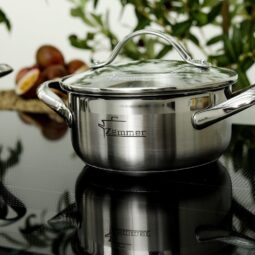 - Màu sáng bóng của kim loại tạo sự sang trọng cho bộ nồi và căn bếp.