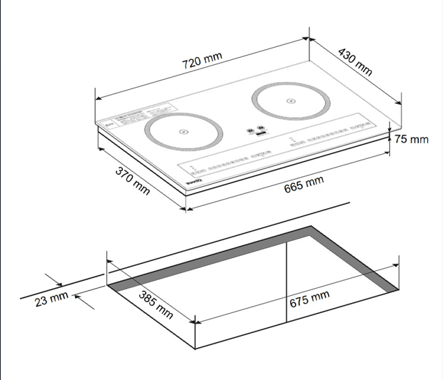 – Bếp có 2 vùng nấu với mạch điều khiển riêng biệt