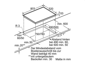 | Vùng nấu 3: 1 x Ø 145 mm, 1,4 kW (mức công suất tối đa 1,8 kW) |