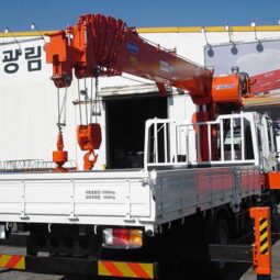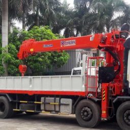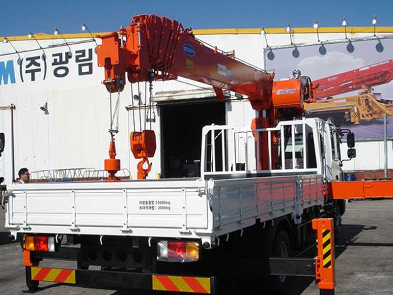 Nhờ thiết kế linh hoạt, cẩu dễ dàng gắn trên nhiều dòng xe tải như Hino, Hyundai, Dongfeng…