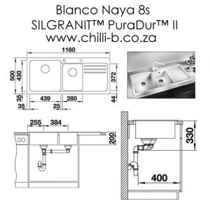Kích thước của chậu đá Blanco naya 8S màu đen