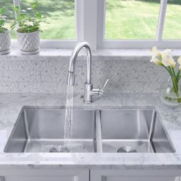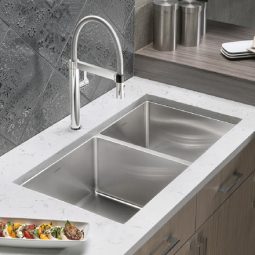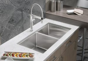+ Chậu rửa bát âm Blanco Quatrus làm bằng thép không rỉ phù hợp với hầu hết các tủ bếp