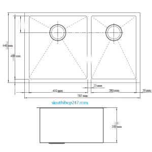 – Kích thước mỗi bồn: 435D x 400R mm/ 285D X 400R mm