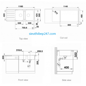 Kích thước của chậu rửa bát blanco lemis