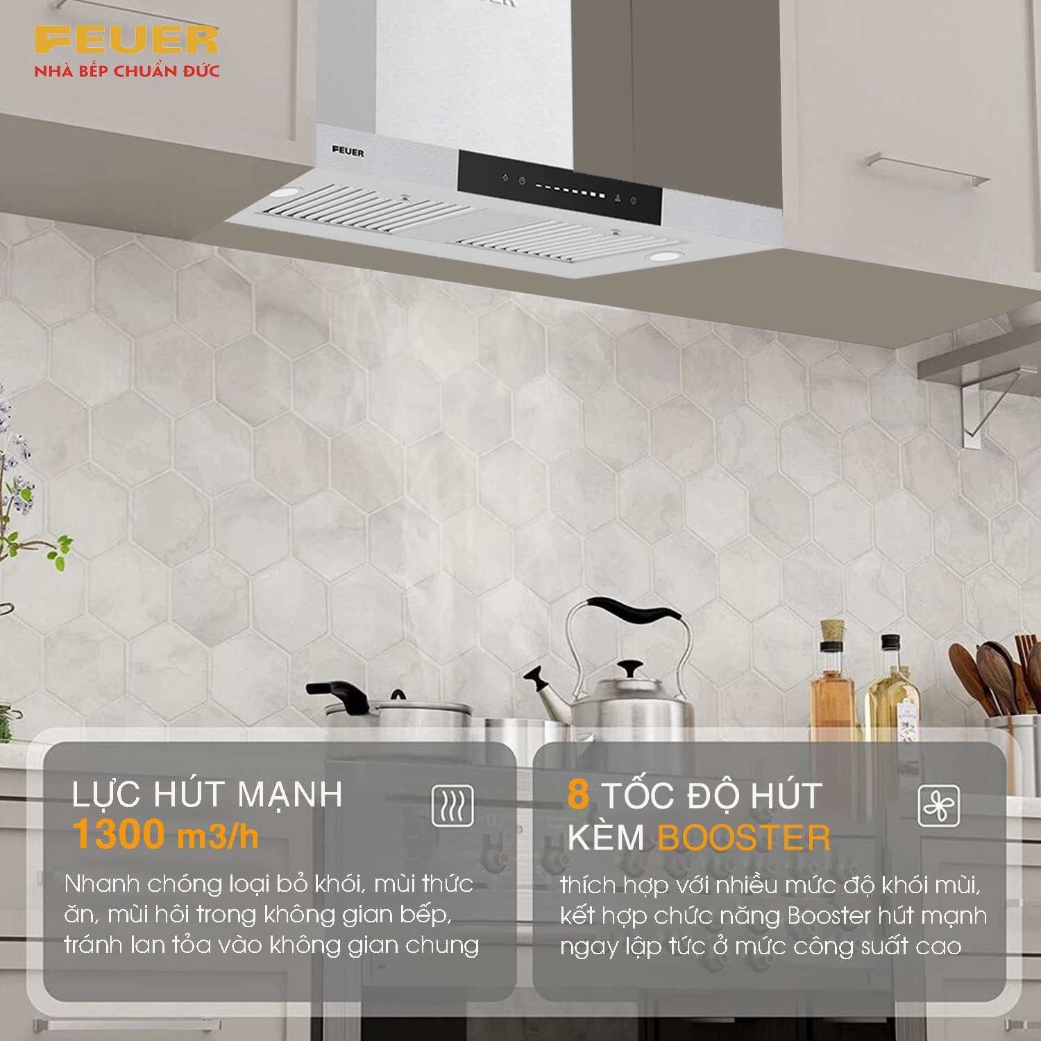 Hút mùi FEUER T59S thế hệ mới với tính năng vượt trội và thẩm mỹ cao