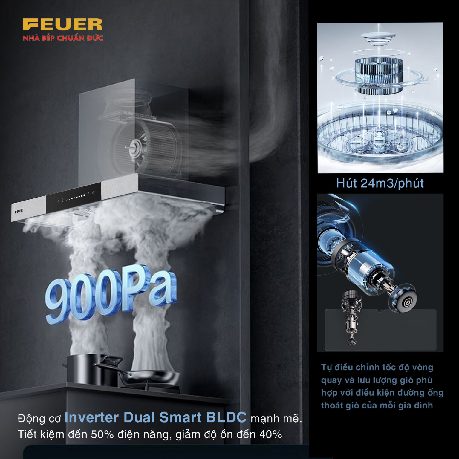 CÔNG NGHỆ GIẢM ỒN CẢI TIẾN MÁY HÚT MÙI FEUER T59S