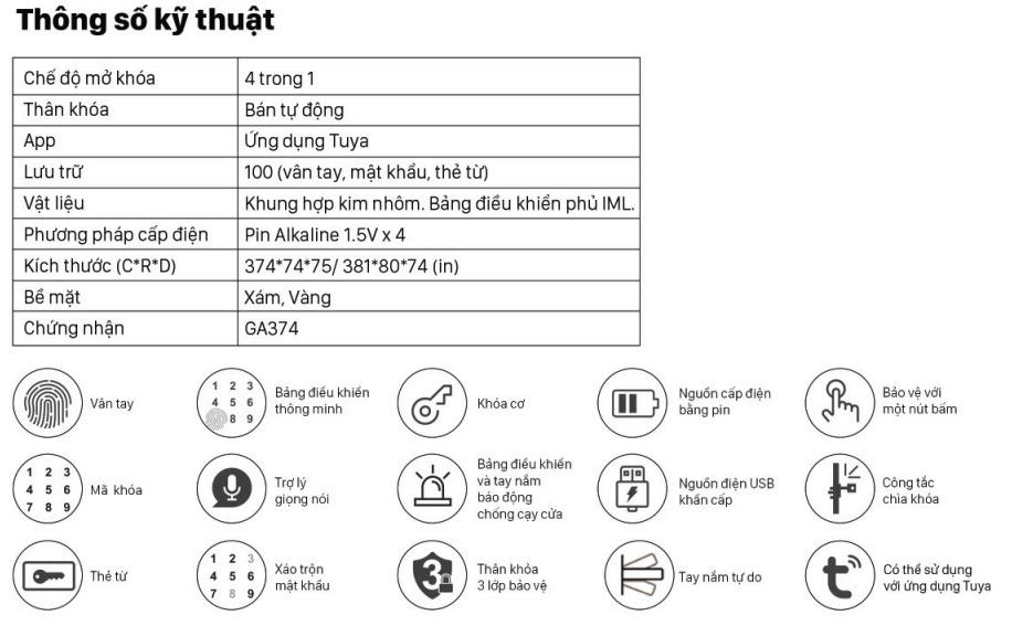 - Mở khóa bằng mật mã: Tối đa 100 mật mã