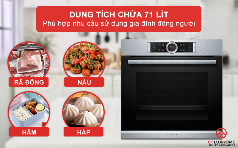 Đặc điểm nổi bật của LÒ NƯỚNG KÈM HẤP ÂM TỦ BOSCH HRG635BS1 SERIE 8 71L với chức năng