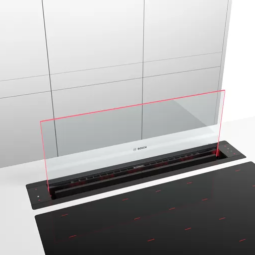 Máy hút mùi Bosch DDW88MM65 được thiết kế dạng âm bàn, gần với vùng bếp nấu ăn, tạo cảm giác liền mạch và gọn gàng, không gian phía trên bếp sẽ thoáng đãng hơn so với các máy hút mùi cồng kềnh, tấm chắn của máy hút mùi âm bàn có thể thu lại giúp không gian bếp gọn gàng hơn.