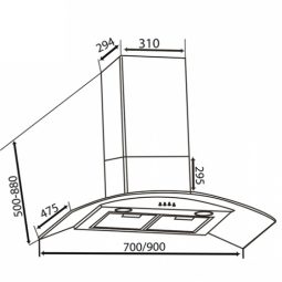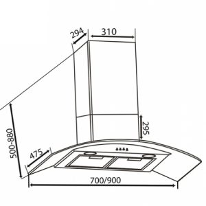 Kích thước máy hút mùi (dài x sâu x cao) : W700 x D475 x H(500-880) mm