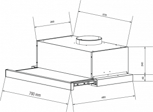 Thuộc dòng hút âm tủ, dạng kéo, kích thước 600mm