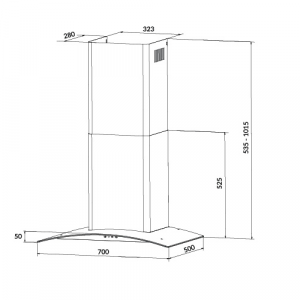Kích thước máy hút mùi (dài x sâu x cao) : W700 x D500 x H(535-1015)mm