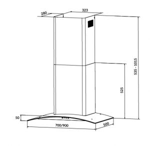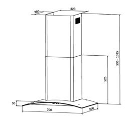 Kích thước máy hút mùi (dài x sâu x cao) : W700 x D500 x H535-1015mm