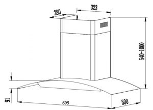Kích thước máy hút mùi (dài x sâu x cao) : W700 x D500 x H(550-1040)mm