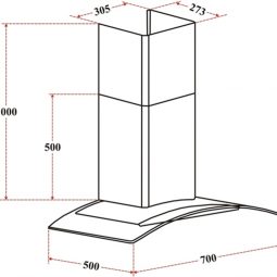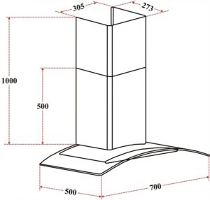 Kích thước máy hút mùi (dài x sâu x cao) : W700 x D500 x H(550-1000)mm