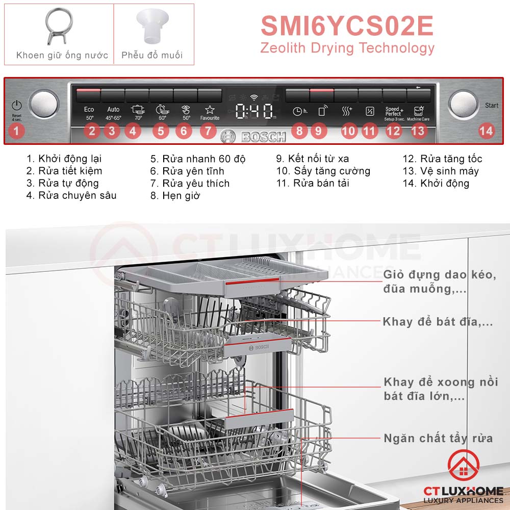 TÍNH NĂNG NỔI TRỘI TRÊN MÁY RỬA BÁT BOSCH SMI6YCS02E