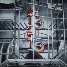 Máy rửa chén âm toàn phần kiểu dáng hiện đại, nhỏ gọn.