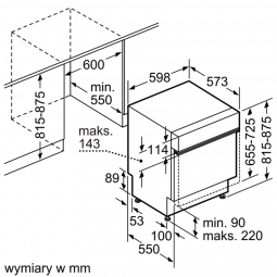 | Kích thước lắp đặt (mm) | W600 x D550 x H815/875 |