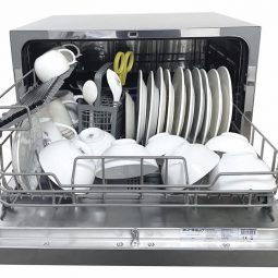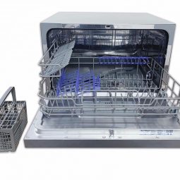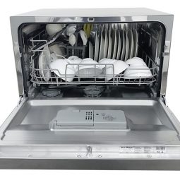 Máy rửa bát Eurosun SKS55E07EU thiết kế dáng độc lập trên mặt bàn bếp hoặc ( có thể lắp âm ) vào tủ bếp, với kích thước máy rộng 555 mm, cao 458 mm, sâu 550 mm phù hợp với nhiều không gian bếp kể cả những không gian bếp chưa được thiết kế sẵn vị trí đặt máy rửa bát.