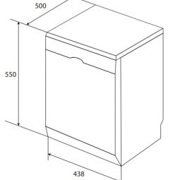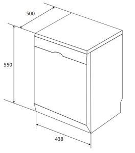 Máy rửa bát Kaff KF – W8001EU thiết kế lắp âm vào tủ bếp, với kích thước máy rộng 550 mm, cao 438 mm, sâu 500 mm phù hợp với nhiều không gian bếp kể cả những không gian bếp chưa được thiết kế sẵn vị trí đặt máy rửa bát.