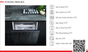 Máy có 8 chương trình rửa linh hoạt gồm: Rửa chuyên sâu, rửa tự động, rửa tiết kiệm, rửa ly, rửa thông thường, rửa 90 phút, rửa nhanh và tráng giúp người nội trợ lựa chọn các chương trình phù hợp với độ bẩn của bát đũa. Ngoài ra máy còn có thêm chức năng rửa đặc biệt là sấy khô bằng khí nóng, rửa sâu tăng cường, rút ngắn thời gian, rửa bán tải và tự động hé cửa khi kết thúc chương trình