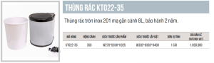 Thùng rác tròn inox 201 mạ gắn cánh KIASO KT022 có 2 loại 8L và 14L